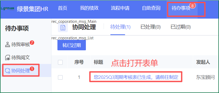 第一步:員工自助端-首頁找到考核表