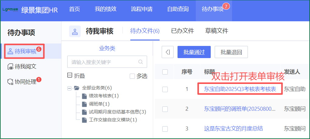 1OA-單點HR-自助-首頁-待辦事項-待我審核-待辦文件