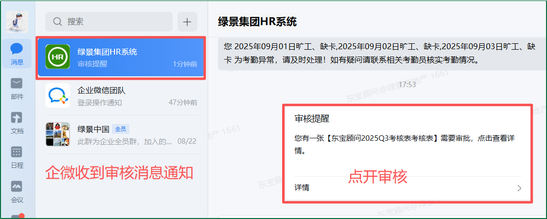 路徑:企微-消息-審核提醒-打開審核