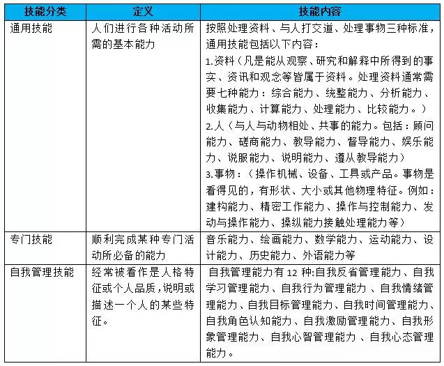 能力按后天是否可以改變,可以分為天賦和技能兩大類。天賦是無法改變的,某些職業需要天賦,你才能成為該領域卓越的人,例如運動員。而技能是后天可以改變的,技能分為三種,分別是通用技能(可遷移技能)、專業技能和自我管理技能。