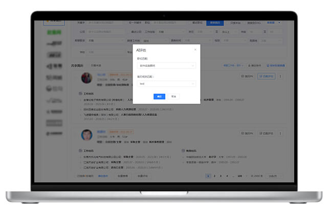 智(zhi)能嵌入AI評估(gu)功能,一鍵(jian)顯(xian)示簡歷分值,自定義評估(gu)規則,批量完成多種類(lei)人才評估(gu)